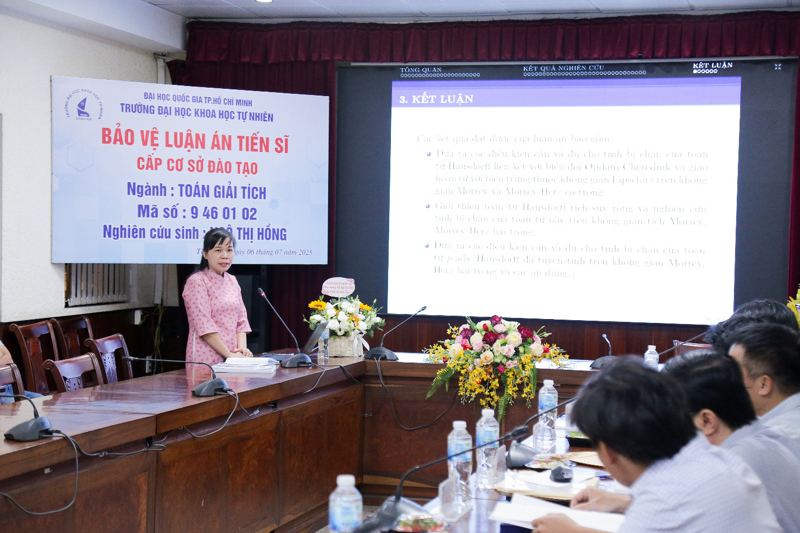 Ngày 06/7/2025, tại Trường Đại học Khoa học tự nhiên, ĐHQG-HCM, NCS. Ngô Thị Hồng, giảng viên Khoa Khoa học Cơ bản của Trường Đại học Xây dựng Miền Trung đã bảo vệ thành công luận án tiến sĩ cấp Cơ sở đào tạo với đề tài: "Toán tử Hausdorff và thế vị Riesz trên một số không gian hàm". Luận án được thực hiện dưới sự hướng dẫn khoa học của PGS.TS. Lý Kim Hà (Trường Đại học Khoa học Tự nhiên, Đại học Quốc gia Thành phố Hồ Chí Minh) và PGS.TS. Đào Văn Dương (Trường Đại học Xây dựng Miền Trung).